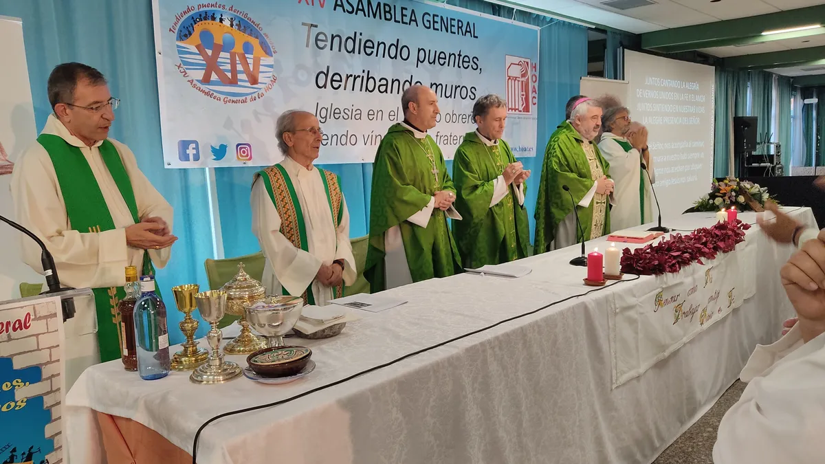 (Noticias Obreras).- En la tarde de ayer tuvo lugar la primera eucaristía de la XIV Asamblea General de la HOAC que se está desarrollando en Segovia con la asistencia de más de 800 personas procedentes de 41 diócesis. Carlos Escribano, arzobispo de Zaragoza y presidente de la Comisión Episcopal para los Laicos, Familia y Vida de la Conferencia Episcopal Española, quien presidió la celebración, aseguró durante la homilía que la evangelización del mundo obrero en el contexto actual requiere de creatividad y de la búsqueda de caminos nuevos y renovados. “Ese es el reto que la Iglesia en España ha puesto en vuestras manos”.