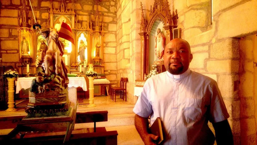 Un cura africano en pleno corazón de Galicia todavías llama la atención. Jesús Nsue Ndemesogo Obono ha llegado hace unas semanas a la zona de Caldelas (Ourense). Viene de África, de Guinea Ecuatorial, en concreto. En junio, fue ordenado sacerdote por el obispo, monseñor Lemos Montanet. Ha llegado con mucha ilusión por sacar a Jesús de los sagrarios de las iglesias, vacías y silenciosas, de una España despoblada donde cada vez los vecinos son más ancianos. Aunque asegura que en las parroquias donde hay jóvenes y niños todos asisten a la misa.