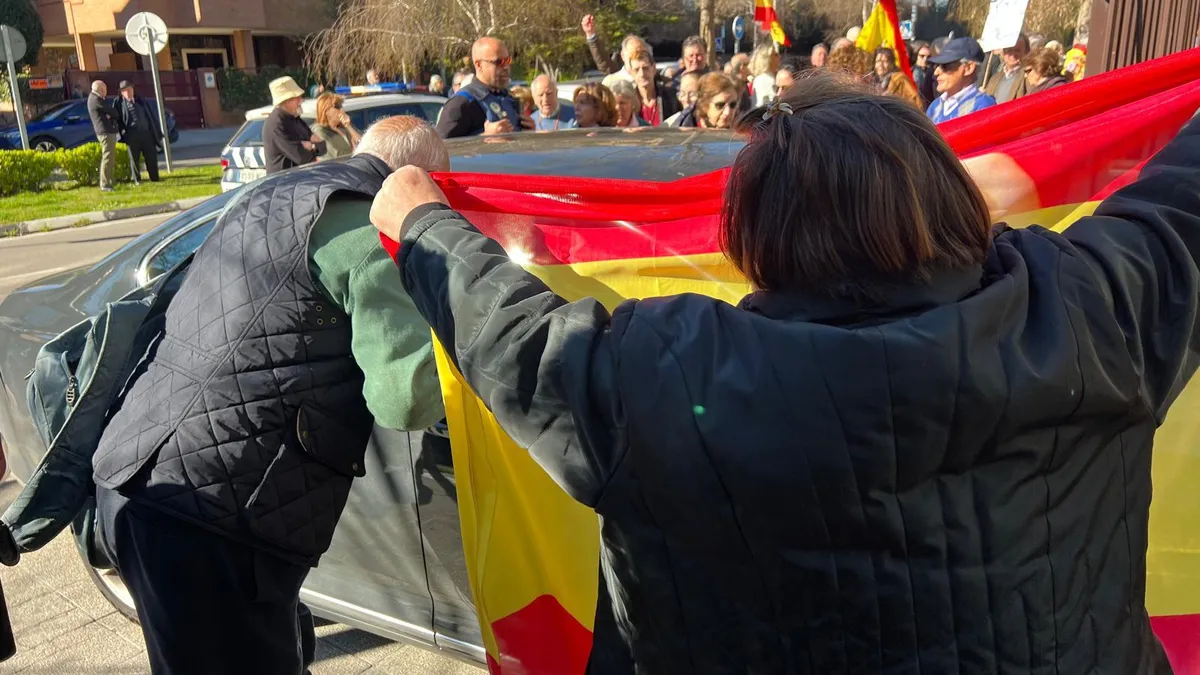 Algunos de ellos, portando carteles llamando "Traidor" al cardenal de Madrid, José Cobo, y portando banderas preconstitucionales. Una señora, incluso, ha llegado a parapetarse delante del coche del cardenal Osoro, impidiéndole la entrada.