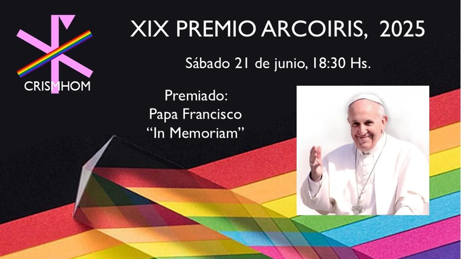 "En Crismhom trabajamos para que día a día nuestra doble realidad pueda vivenciarse sin dolor, sin soledad y sin lágrimas, tan sólo con la alegría de sentirnos parte de una misma luz, hijos de un mismo Dios", explican desde la organización, que añaden que Francisco es merecedor del premio porque "tendió puentes donde durante siglos solo hubo distancia o rechazo".