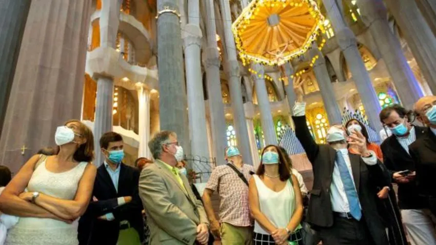 La Sagrada Familia, edificio emblemático del arquitecto modernista Antoni Gaudí, ha reanudado el pasado sábado las visitas después de siete meses cerrada al público, en paralelo a la llegada de los primeros turistas a Barcelona y la mejora de los datos de la pandemia.