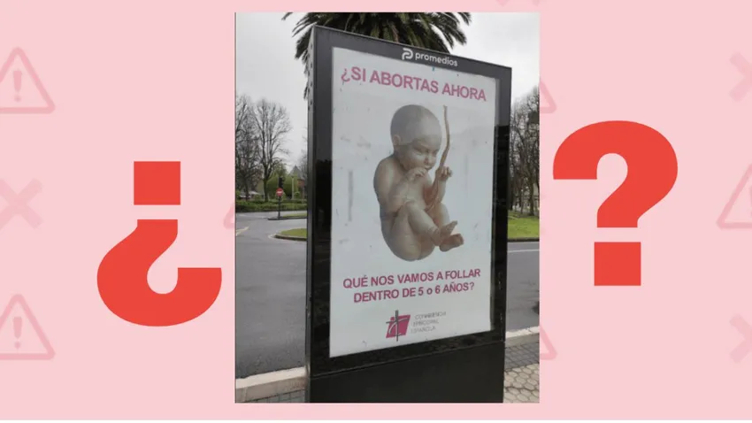Los carteles mostraban la imagen de un feto y la leyenda "Si abortas ahora, ¿qué nos vamos a follar dentro de 5 o 6 años?", acompañado del logotipo de la Conferencia Episcopal Española.
