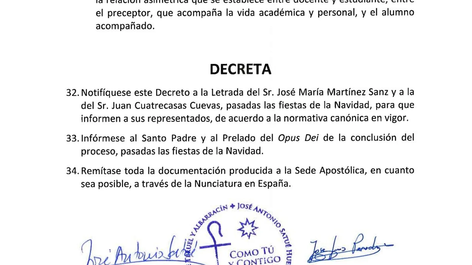 “Los hechos probados, cometidos contra un menor de edad e imputables al acusado, constituyen una causa grave que justifican la expulsión de la Prelatura”, según el artículo 30.1 del Código de Derecho Particular del Opus Dei. Esta es la conclusión de la sentencia del ‘caso Gaztelueta’, firmada por el delegado pontificio, José Antonio Satué, y el notario José Luis Perucha, y a la que ha tenido acceso RD. La expulsión de Sanz del Opus es la única medida que se toma: no se establecen indemnizaciones, ni hay órdenes ejecutivas contra la Obra o contra los otros participantes en el proceso.