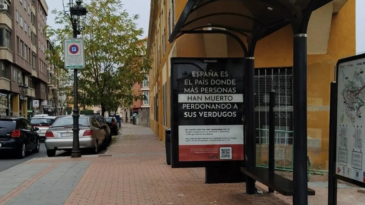 De acuerdo con la asociación, las marquesinas llegan a la calle “en medio de la polémica levantada por la recientemente aprobada Ley de Memoria Democrática, que busca instalar un relato único sobre el pasado y difuminar la realidad de la persecución religiosa que tuvo lugar en España”.