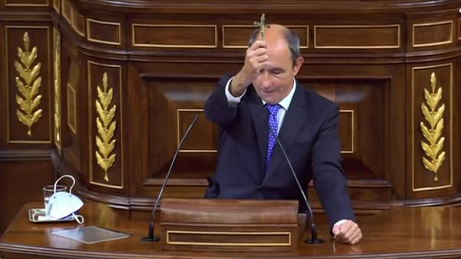 Un diputado de la extrema derecha muestra en el Congreso la cruz de su tío, futuro beato, asesinado en la Guerra Civil