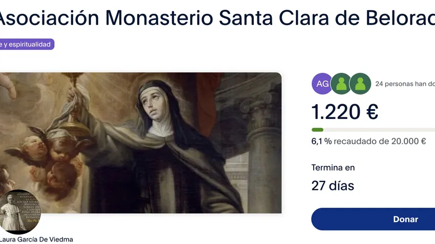 (Burgos conecta).- Las exclarisas de Belorado continúan su camino fuera de la Iglesia Católica. Ahora, la exabadesa Laura García de Viedma ha iniciado una campaña de recaudación de fondos para «subsistir económicamente» y pide donaciones hasta llegar a 20.000 euros.
