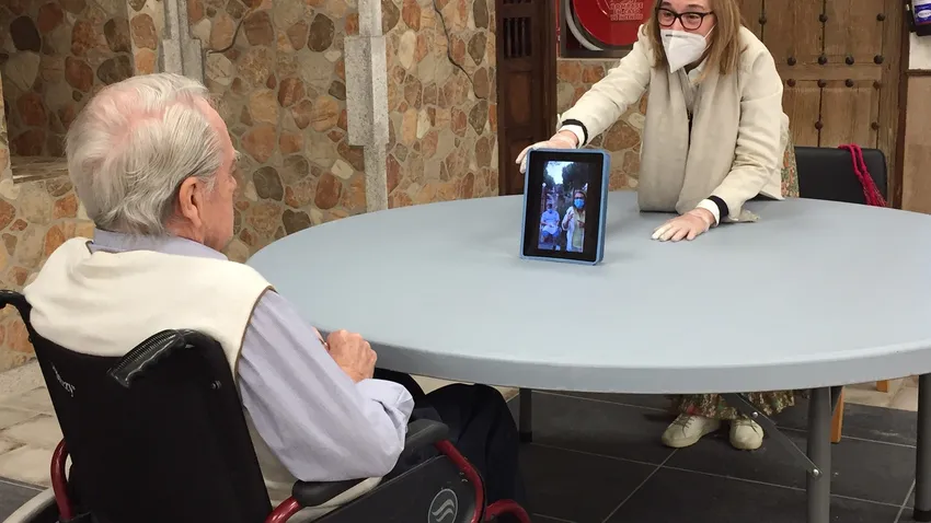 María Ángeles y Rosa han visitado a su padre Luis, pero esta última se tuvo que conformar con saludar desde la ventana. “Aun así, ha sido tan bonito, porque me ha reconocido” señala sonriente. “¡Qué emoción cuando he sacado la tablet! -destaca María Ángeles- y le han ido saludando los niños y el resto de la familia por videollamada… hasta ha llorado de emoción asintiendo al nombre de cada uno… Ya mismo voy a pedir cita para la semana que viene. Estamos tan felices y tan agradecidos al centro por volcarse tanto con todos los residentes. Nos consta que ha sido un gran esfuerzo.”