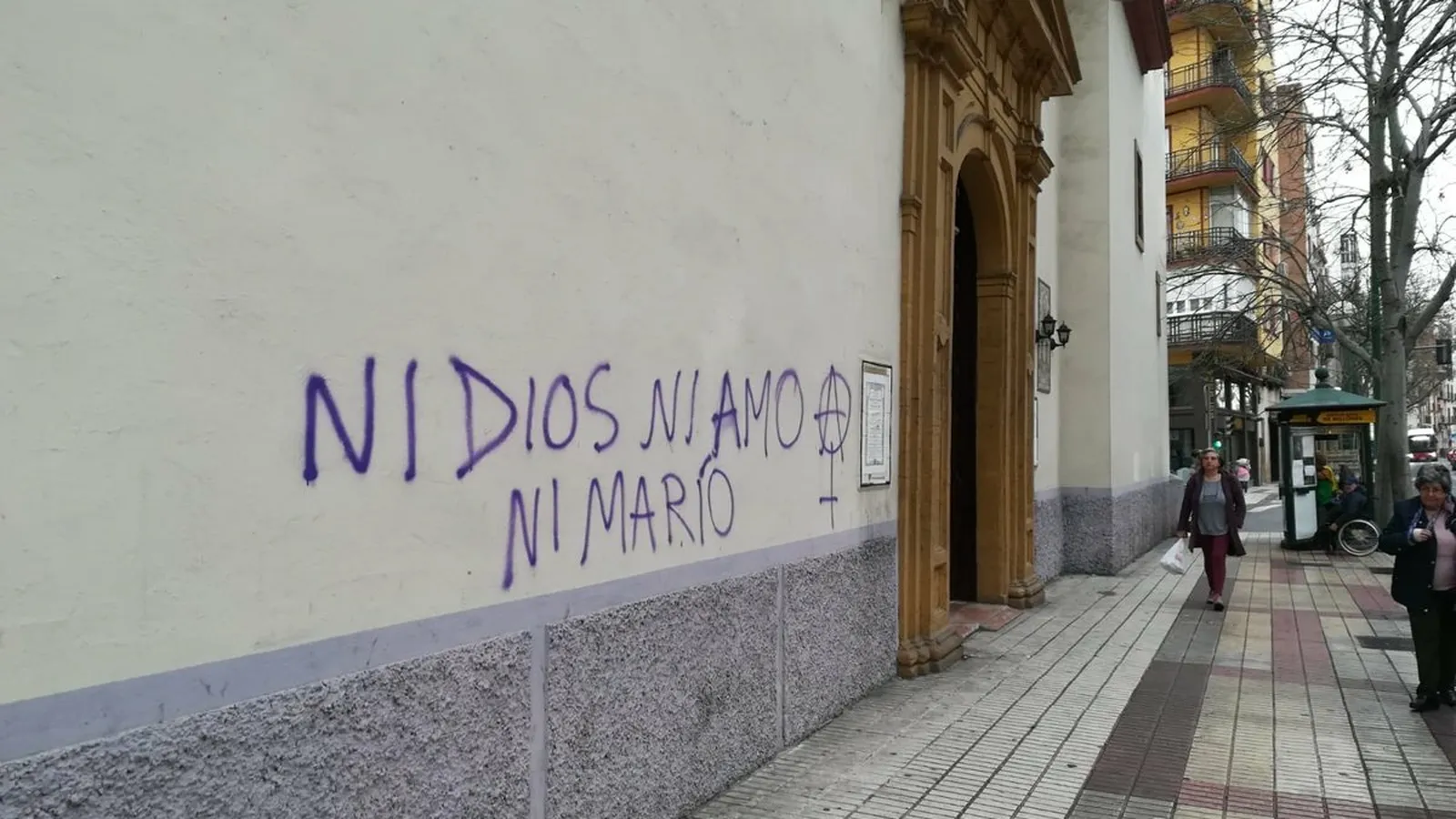 Hoy, 8-M, Día Internacional de la Mujer, iglesias de Madrid y Sevilla han sido ensuciadas con pintadas con lemas tales como "Puto clero", "Pederastas" o "Aborto libre". En Valladolid, por otra parte, más de una decena de huelguistas han interrumpido en la presentación de la nueva edición de las 'Edades del Hombre' con protestas contra la religión en la educación y el aborto.