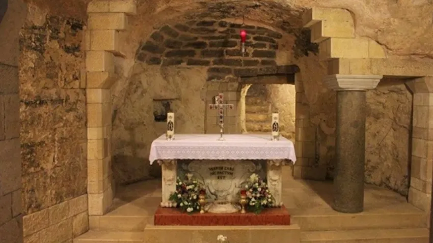 Otro tanto ocurre al pasearse por la majestuosa cripta de la basílica de la Anunciación y detenerse frente a su altar. Si se cierran los ojos y se abre el corazón, es fácil ver a María afanada en las labores domésticas, las mismas que tantas veces hemos visto realizar a nuestras madres y esposas. En ese impresionante lugar, en el que todavía resuena el eco del “hágase según tu voluntad” de la encarnación, parece que los sólidos forjados que sostienen la basílica, construida encima, musitan dulcemente el nombre de María, a la vez que invitan a quienes entran en ella a recitar espontáneamente el “Avemaría” como la cosa más natural del mundo. ¿Cuántas avemarías se habrán rezado allí?
