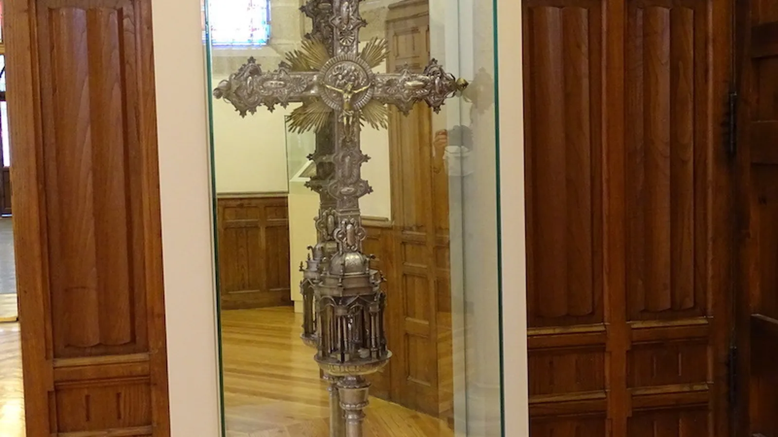 De allí procede la pieza que el Palacio de Gaudí de Astorga presenta este mes coincidiendo con el Año Santo Jacobeo. Se trata de la macolla de la cruz procesional de Santiagomillas, una obra que data de 1991, aunque la cruz es anterior y está fechada en el siglo XVIII.