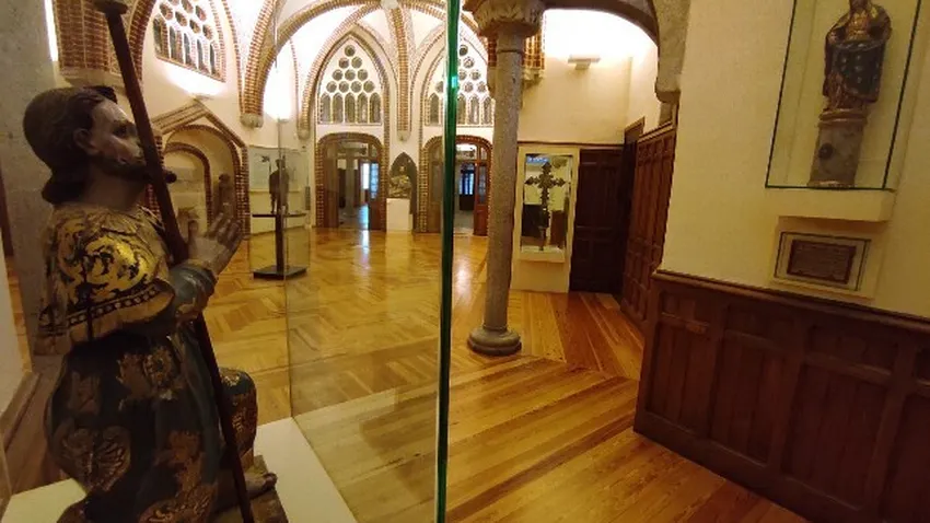 Para conmemorar este mes, el Museo de los Caminos del Palacio de Gaudí de Astorga, propone un conjunto escultórico que ofrece una de las variedades iconográficas con las que se representa al apóstol Santiago: orando ante la Virgen del Pilar. Con motivo del Año Santo Compostelano, el Museo propone cada mes una pieza de la tradición jacobea de la Diócesis de Astorga. La talla procede de la parroquia de Santa marta de Astorga y datan de la segunda mitad del siglo XVIII. Acompaña esta muestra en la colección permanente del Museo una cartela de indulgencias del obispo Juan Manuel Merino y Lumbreras (en la silla episcopal entre 1767 y 1782).