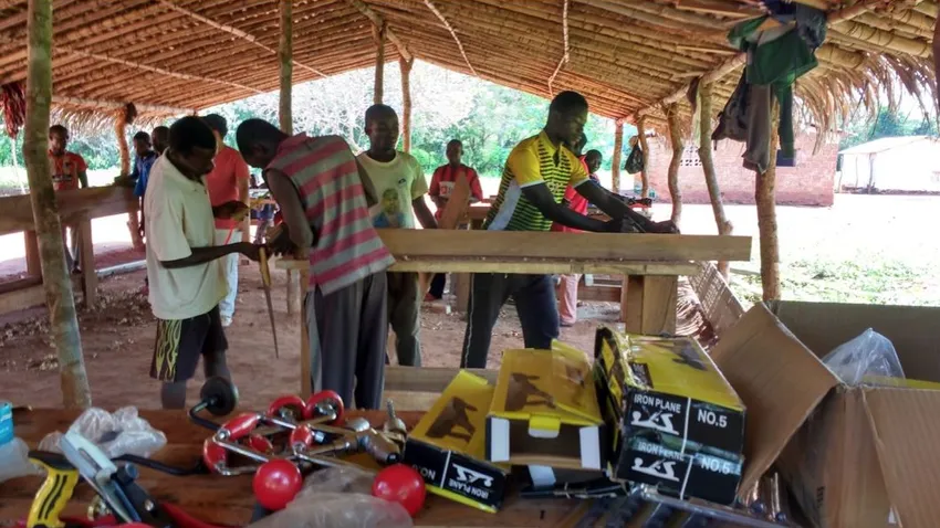 Las sierras y las lijas de madera han ocupado el sitio de los machetes y los kalasnichoffs. Trincheras y zonas neutras se han volatilizado y pasan cada día de 8 a 10 horas juntos en el taller. Todo allí respira paz y trabajo. Es como si se cumpliera la profecía de Isaías 10 sobre el lobo y el cordero que habitan juntos. No hace el frío que en aquellas estepas congeladas de Flandes, pero hay el mismo calor de hogar en los corazones de unos y otros. En Bangassou, cerca de la Navidad, hace un calor agobiante. Todos estos jóvenes saben que éste o el otro quemó la casa del otro, que su grupo mató y desangró los habitantes del pueblo vecino. Saben que algunos de ellos tuvieron que huir de aquel a quien hoy sujeta la madera para juntar las tablas con cola.