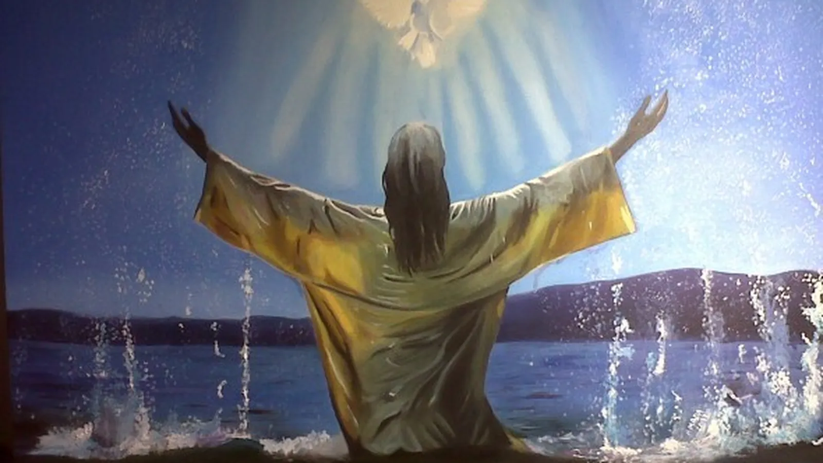 Pero llegó el momento en que junto con la multitud, y no él solo como muestran las pinturas, Jesús entró en el agua. A una señal del Bautista, él se sumergió en el agua y así se dejó bautizar, como hacían todos.
