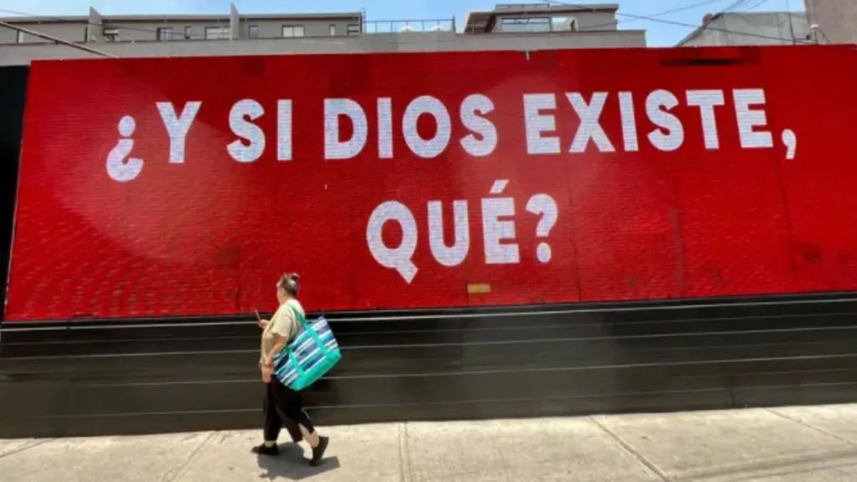 La frase “¿Y si Dios existe, qué?”, colocada en distinto puntos de la CDMX, ha dejado pensativos a incontables transeúntes que circulan por conocidas vías de la capital de la República, como Periférico Sur, Avenida Patriotismo, Avenida Revolución, Tacubaya, La Villa, Circuito Interior y otras.