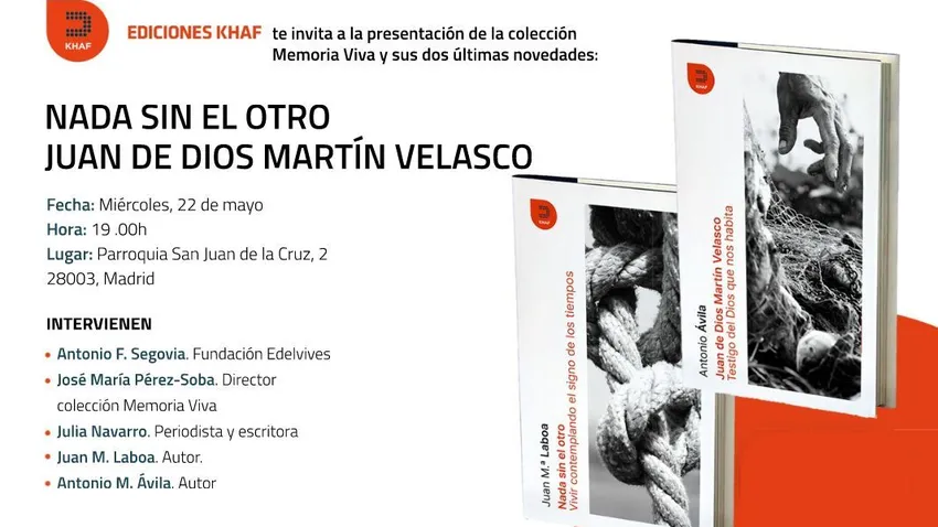 Ediciones Khaf presenta el próximo miércoles, 22 de mayo en una de las salas de la Parroquia de san Juan de la cruz (Plaza san Juan de la Cruz, 2 de Madrid) los dos últimos títulos de la colección Memoria Viva dedicados a Juan María Laboa y Juan de Dios Martín Velasco.