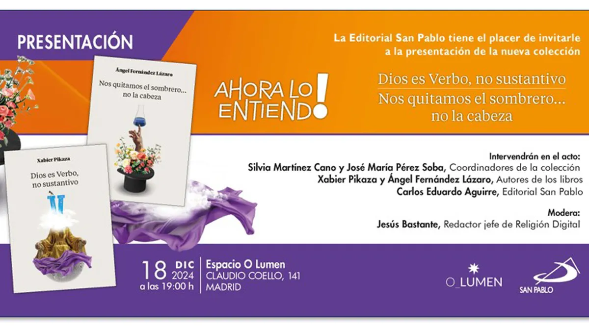 (SP).- San Pablo lanza la colección Ahora lo entiendo (Dios en palabras de hoy), una nueva colección de contenido teológico y espíritu divulgativo que busca dar una explicación sencilla de los contenidos de la fe cristiana desde el diálogo con el mundo contemporáneo.