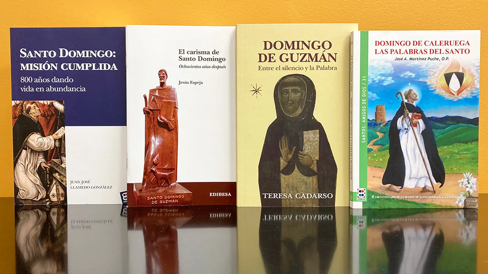Estas obras son ‘Santo Domingo: misión cumplida’, de Juan José Llamedo; ‘El carisma de Santo Domingo. Ochocientos años después’, de Jesús Espeja; ‘Domingo de Guzmán. Entre el silencio y la Palabra’, de sor Teresa Cadarso; y ‘Domingo de Caleruega. Las palabras del santo’, de José Antonio Martínez Puche.