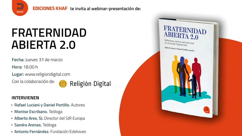 'Fraternidad Abierta 2.0' es el título del último volumen publicado por Khaf y coordinado por los profesores Rafael Luciani y Daniel Portillo, que engloba toda una serie de reflexiones sobre la amistad social en un mundo fragmentado, a raiz de la publicación de 'Fratelli Tutti' del Papa Francisco. Y, también, será el eje de los XXXV Jueves de RD, este jueves, a las 18horas (España), organizado por RD con la colaboración de Instituciones Religiosas del Banco Sabadell y el apoyo técnico de Católicos en Red.