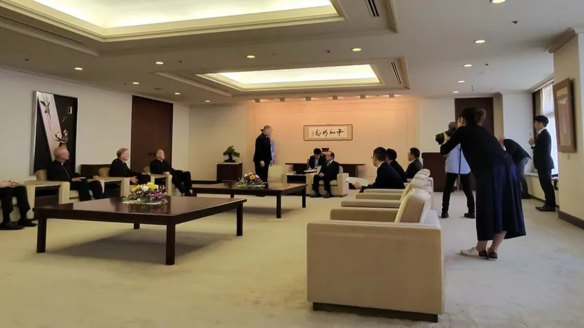 Una peregrinación coordinada por la Alianza para un Mundo Sin Armas Nucleares (PWNW), fundada en agosto de 2023 por los obispos de cuatro diócesis de Estados Unidos y Japón afectadas por el desarrollo de armas nucleares (Santa Fe, Seattle, Hiroshima y Nagasaki) y patrocinada por universidades católicas participantes, como la Universidad de Georgetown, la Universidad Loyola de Chicago, la Universidad Marquette, la Universidad de Notre Dame, la Universidad Católica Junshin de Nagasaki y la Universidad Sophia de Tokio.