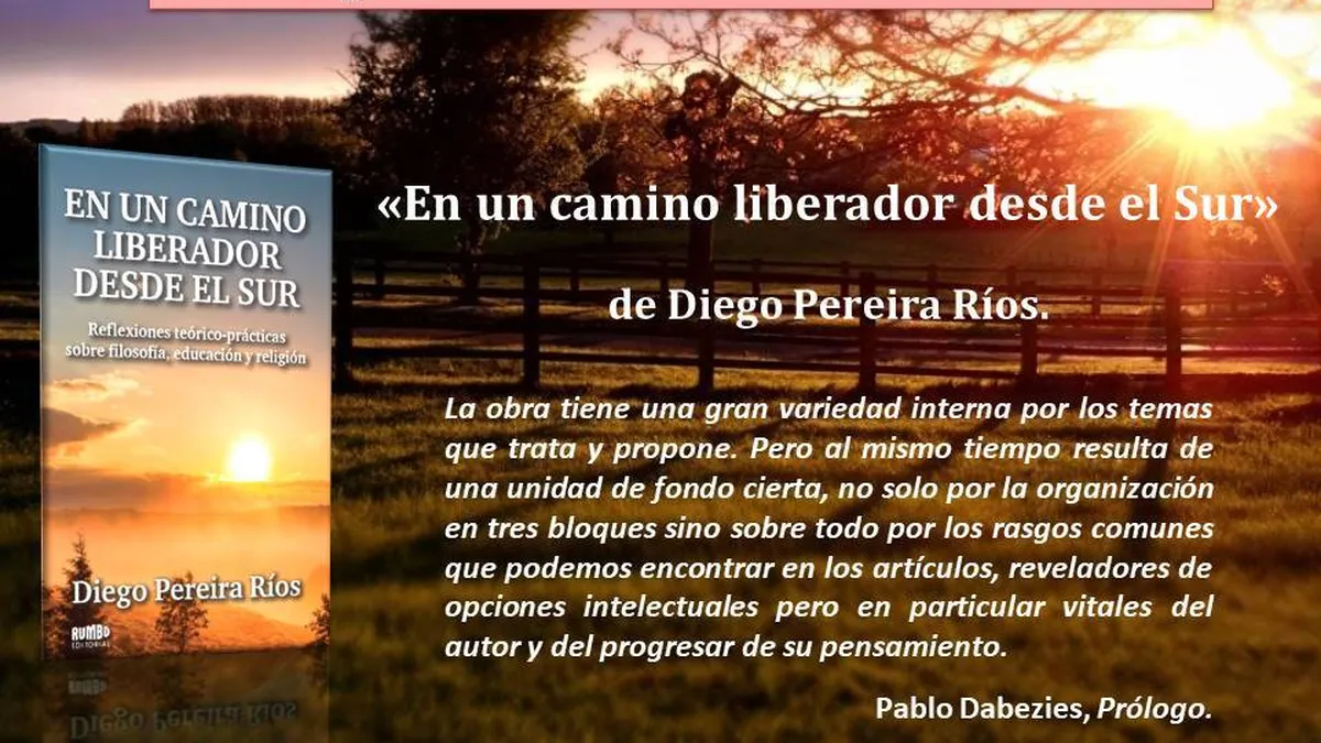 El libro "En un camino liberador desde el Sur", Reflexiones teórico-prácticas sobre Filosofía, Educación y Religión, es una colección de artículos que reflejan el camino intelectual, pero sobre todo el compromiso de fe y el compromiso social de nuestro hermano Diego Pereira Ríos. Los catorce artículos que componen el libro se dividen en tres partes sobre los tres temas anunciados en el subtítulo del libro. Si lo repasamos todo con calma, estamos de acuerdo con el Padre Pablo Dabezies que, en su Prólogo, subraya la diversidad de los temas, pero resalta que todos están unidos por algunos hilos comunes. Todo el libro está escrito desde una perspectiva latinoamericana (desde el Sur). En cada página, detrás de las palabras, se percibe una opción de fe que anima al autor y el compromiso de una inteligencia amorosa que no sólo se satisface en la interpretación filosófica del mundo, sino que quiere transformarlo.