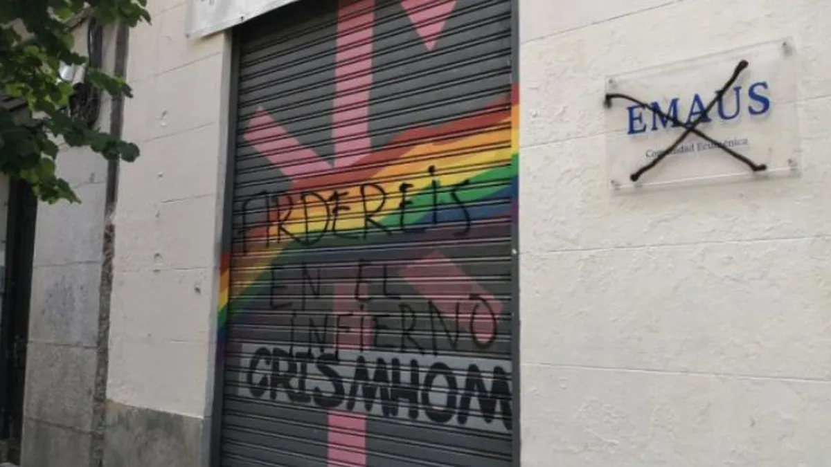 Recientemente, la sede de la asociación CRISMHOM (Comunidad de cristian@s LGTBI+H en Madrid) ha sufrido dos ataques en sus instalaciones, perpetrados por desconocidos que se amparan en el anonimato y la indefensión que supone el uso de mascarillas y la menor presencia de viandantes.