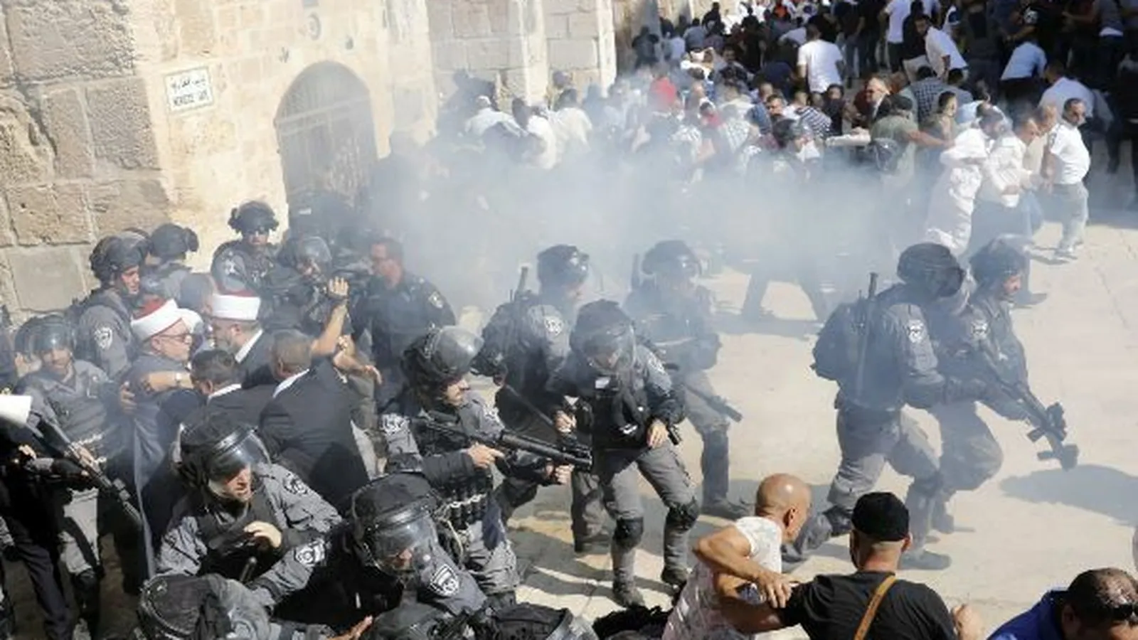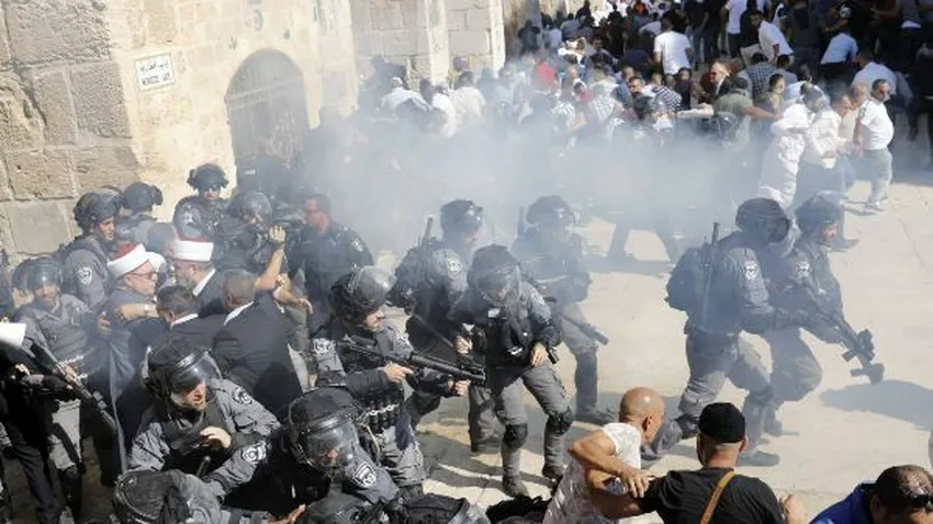 Tras la oración en la mezquita de Al Aqsa, situada en medio de la explanada, varios palestinos empezaron a cantar eslóganes contra la policía y a lanzar proyectiles en su dirección, según los agentes y un periodista de la AFP en el lugar. Para tratar de dispersar a la multitud, la policía empezó a lanzar granadas aturdidoras.