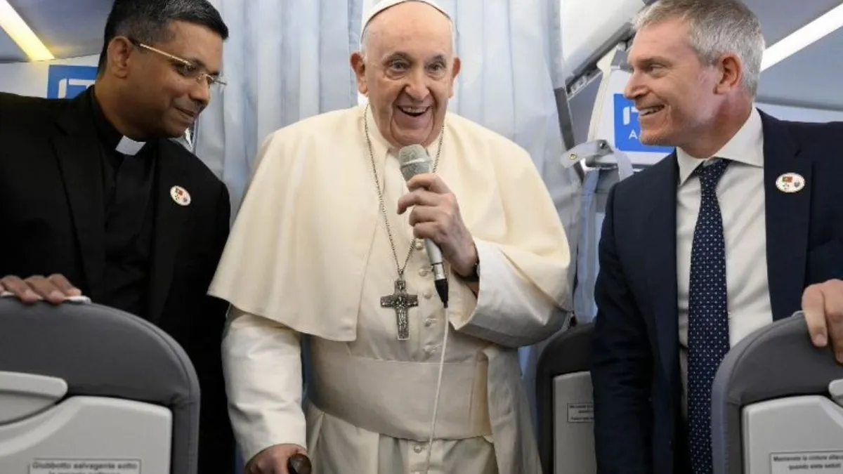 Aprovechando que se estaba sobrevolando el espacio aéreo de España, los periodistas españoles presentes en el vuelo bromearon con Francisco sobre ello y le preguntaron si esto contaba "como visita papal", ya que el pontífice no ha visitado el país, a pesar de que ha recibido muchas invitaciones". "Puede ser", dijo el papa entre risas.