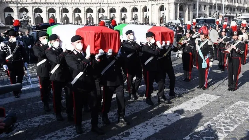 A la ceremonia celebrada en la basílica de Santa María de los Ángeles de Roma por el cardenal Angelo De Donatis asistió el presidente del Gobierno, Mario Draghi, además de los presidentes de la Cámara de los Diputados y el Senado y varios ministros.