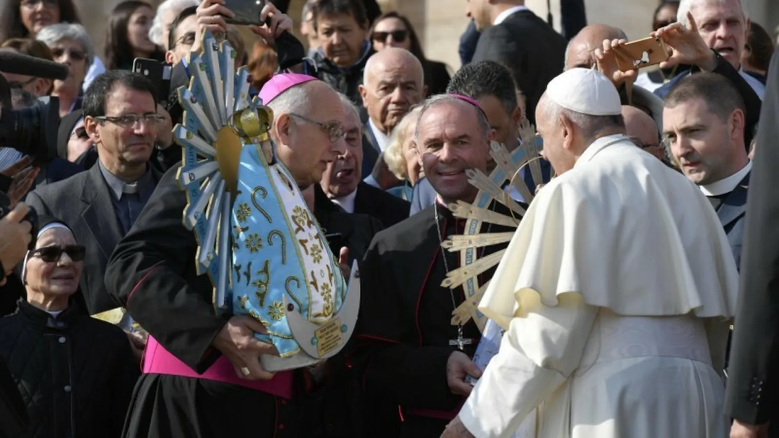 Esta mañana, durante la audiencia general, el Santo Padre bendijo la entrega de la imagen de Nuestra Señora de Luján que, luego de la guerra de Malvinas, estuvo en la catedral castrense San Miguel y San Jorge, en la ciudad de Aldershot, Gran Bretaña.