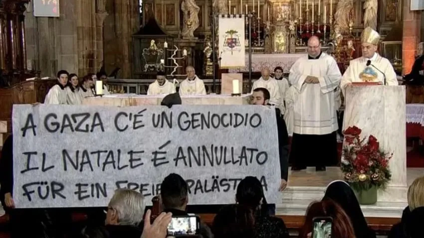 Manifestantes pro palestinos interrumpieron la misa mayor de Navidad en la catedral de Bolzano. Como informó el lunes la televisión italiana (RAI) , los activistas interrumpieron la misa pontificia con fuertes gritos.