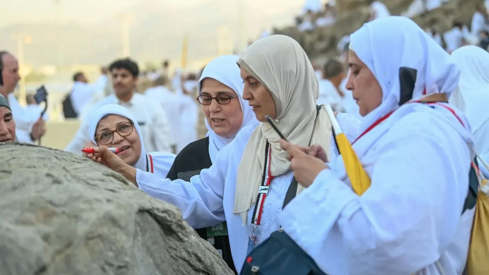El día siguiente los peregrinos vuelven a la zona de Mina, a unos 6 kilómetros, donde recogen piedras para luego lapidar tres columnas que representan al diablo.
