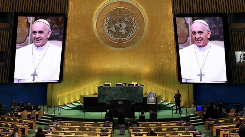 El difunto Papa Francisco, señaló el Secretario General de la ONU, habló sobre "el ideal de nuestra organización de una 'familia humana unida y en armonía, trabajando no solo por la paz, sino en paz, trabajando no solo por la justicia, sino en un espíritu de justicia'".