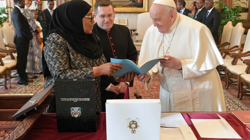 En la mañana de hoy, lunes 12 de febrero de 2024, el Santo Padre Francisco ha recibido en audiencia a la presidenta de la República Unida de Tanzania, Excma. Sra. Samia Suluhu Hassan, quien sucesivamente se reunió con Su Eminencia Cardenal Pietro Parolin, Secretario de Estado de Su Santidad, acompañado por S.E. Mons. Richard Gallagher, Secretario para las Relaciones con los Estados y las Organizaciones internacionales.