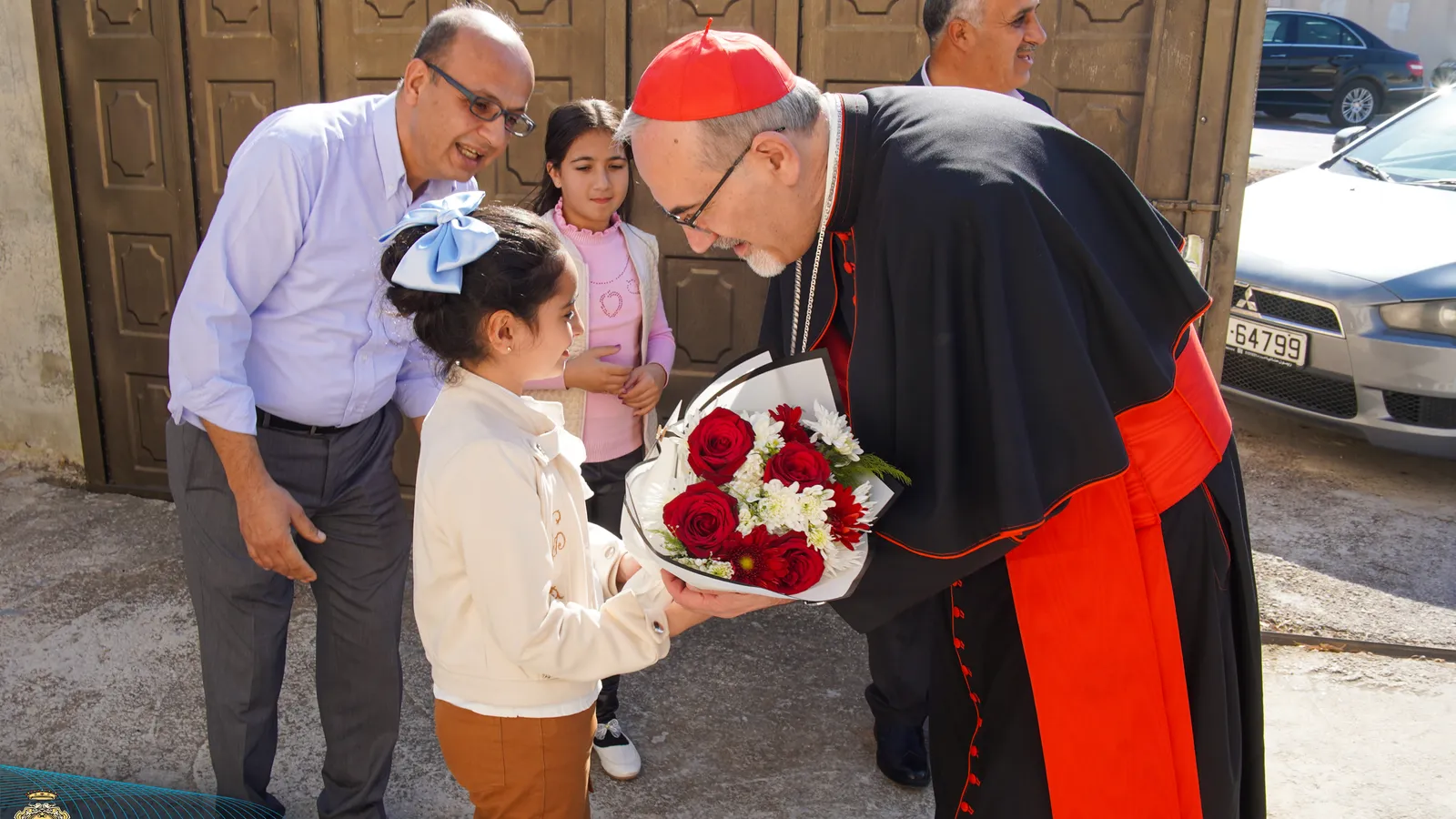 El cardenal Pizzaballa y la delegación que lo acompañaba fueron recibidos calurosamente por el padre Khaled Gammoh, párroco de Smakieh, junto con varios sacerdotes del Patriarcado de Karak y los sacerdotes de la familia Hijaziin, así como por otros líderes eclesiásticos locales y autoridades civiles.