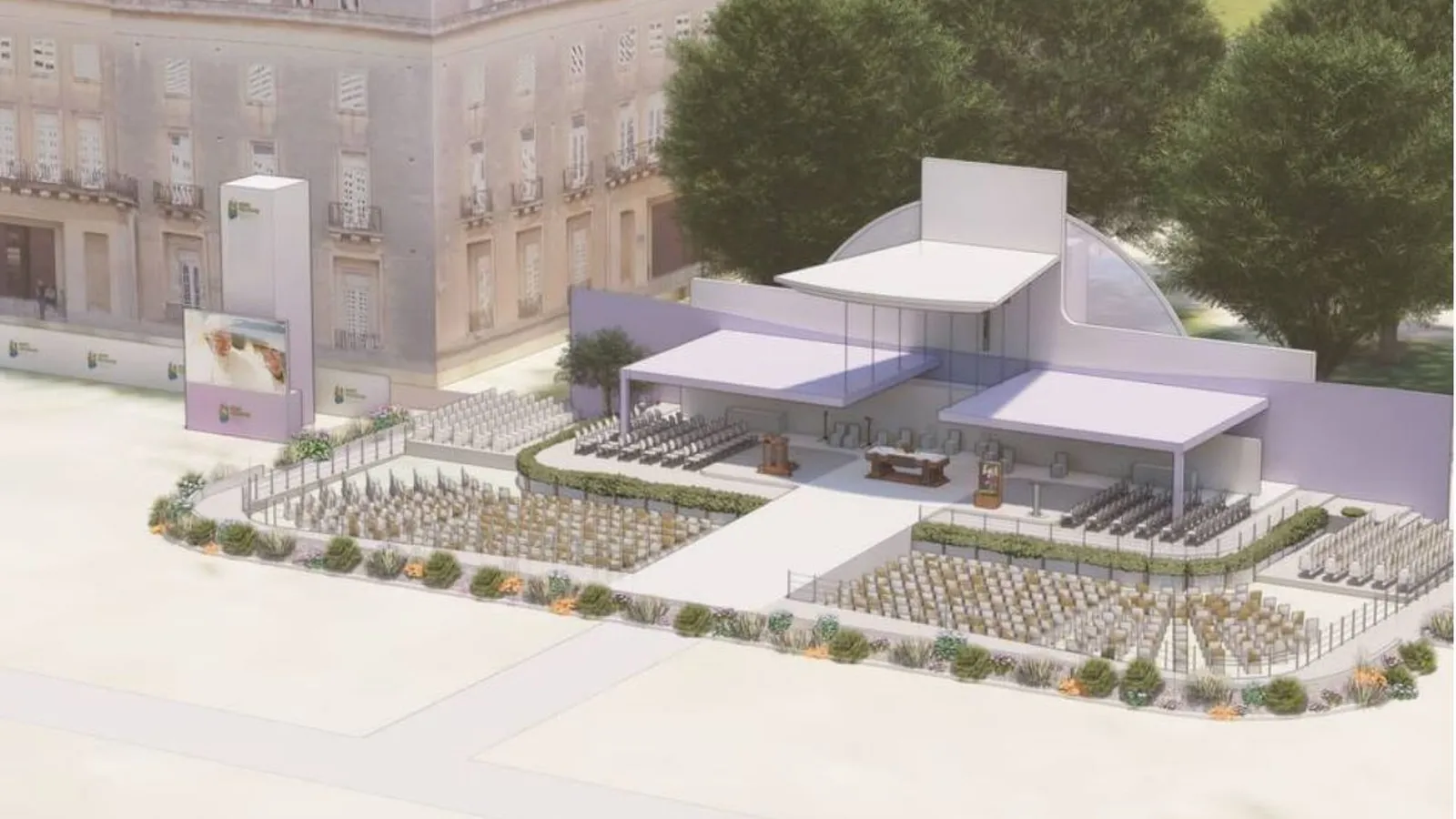 Además, la sacristía se está construyendo debajo del palco para evitar el camino a pie hasta el instituto católico, a 300 pasos de distancia, y habrá un ascensor para acceder al altar.