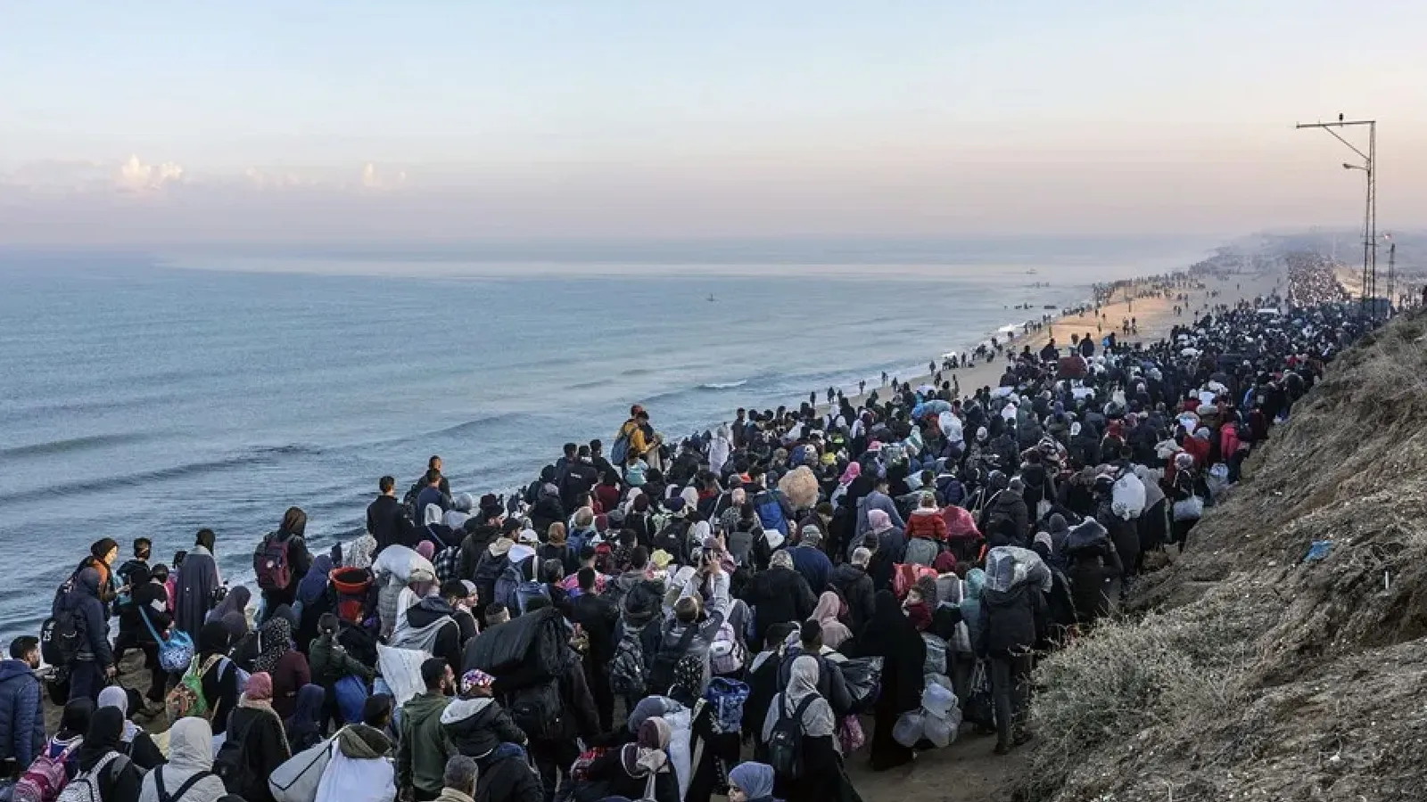 Las imágenes que llegan desde Gaza muestran una marea humana de desplazados que suben por la carretera costera de Al Rashid para cruzar el corredor de Netzarim, que divide el sur del norte de la Franja, desalojado por Israel. A lo largo de la carretera, los vehículos son inspeccionados por contratistas estadounidenses e inspectores egipcios. El objetivo es impedir el transporte de armas hacia el norte. Por el camino, los evacuados están rodeados de escombros y vigilados por militares israelíes.
