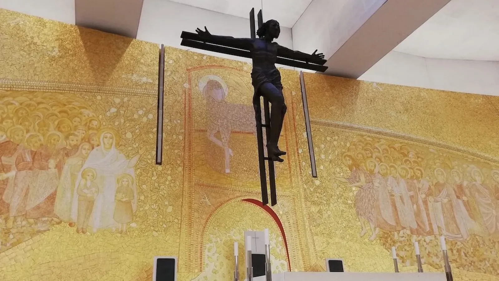 Nos referimos a 'obras', en plural, porque, después del gran panel de 500 metros cuadrados, que se instaló en la Basílica en 2007, Rupnik realizó, unos años más tarde, también a petición del Santuario, dos iconos de los pastorcillos Francisco y Jacinta, que fueron presentados en febrero de 2014 y que estaban destinados a ser colocados para la devoción de los fieles junto a las tumbas, en la Basílica de Nuestra Señora del Rosario de Fátima.