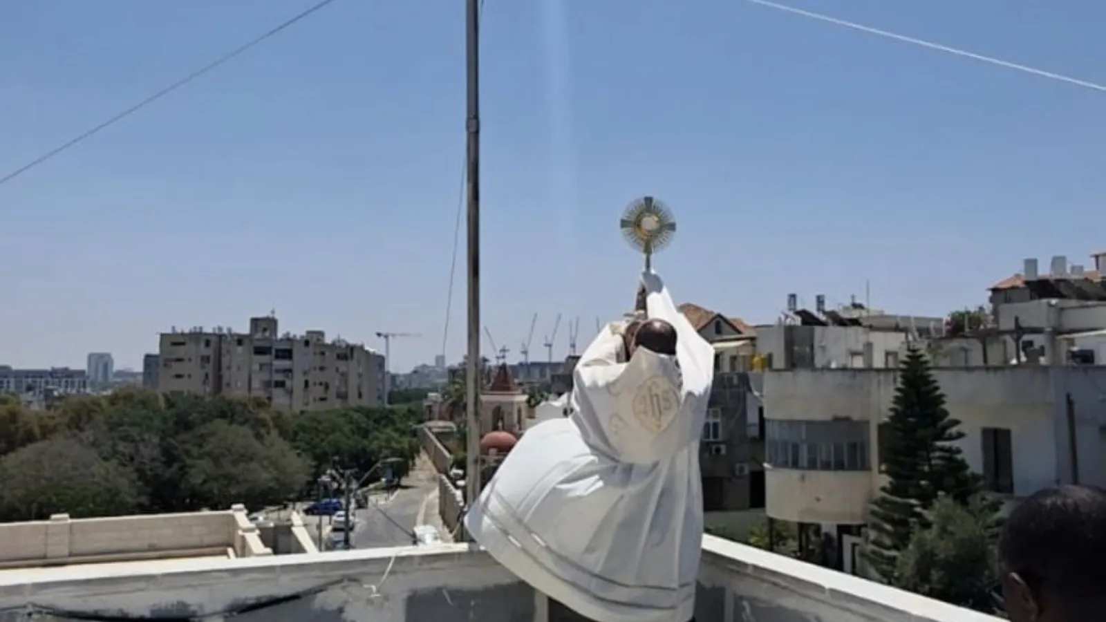 El día de la solemnidad del Corpus Christi, el padre Agustín Pelayo, párroco de la comunidad católica de Jaffa en Tel Aviv, impartió la bendición eucarística a la ciudad, alcanzada poco antes por misiles iraníes lanzados en respuesta al ataque estadounidense a instalaciones nucleares. "Que no sean misiles, sino bendiciones las que desciendan del cielo", dice el párroco, invocando paz y protección para todos, en declaraciones a la agencia SIR.