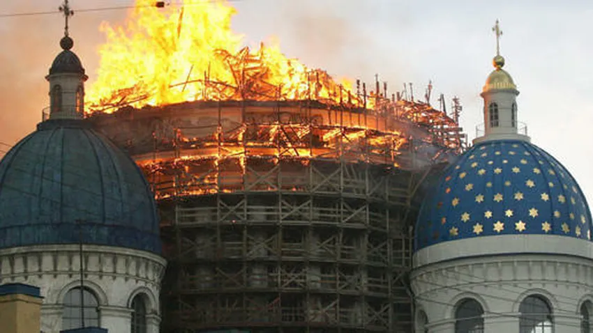 Un incendio causa enormes daños en la catedral de la Santísima Trinidad en San Petersburgo, la antigua capital imperial y actualmente segunda ciudad de Rusia. La catedral, construida en el primer tercio del siglo XIX y monumento arquitectónico protegido por el Estado, se encontraba en obras de restauración.