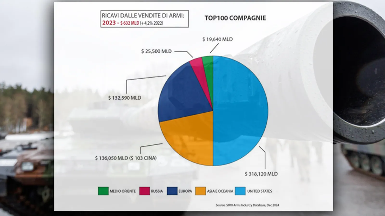 (Vatican News).- En 2023, las cien principales empresas del sector de armamentos y servicios militares registraron un aumento del 4,2 por ciento en sus ingresos (cuantificados en 632 mil millones de dólares) en comparación con el año anterior, con fuertes aumentos, especialmente para los productores con sede en Rusia y Oriente Medio.