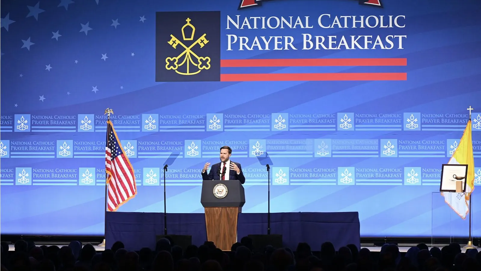 “Si el Santo Padre puede escucharnos, espero que sepa que hay miles de fieles católicos en esta sala y millones de fieles católicos en este país que están rezando por él mientras supera su tormenta particular”. Fue lo más parecido a una oración que pronunció el vicepresidente de los Estados Unidos, J.D. Vance durante su discurso inaugural en el 20º Desayuno Nacional de Oración Católica anual en Washington, DC, tras el encontronazo a raíz de la carta papal criticando duramente la política de deportaciones de la Administración de Donald Trump.
