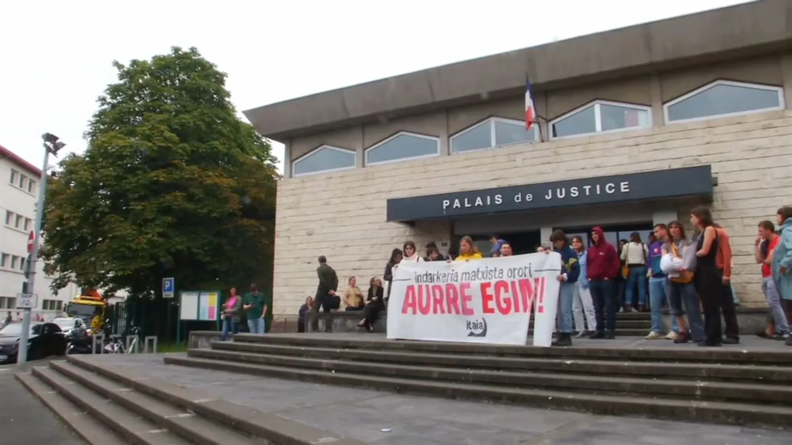 El grupo feminista Itaia se ha concentrado ante el Juzgado de Baiona momentos antes de comenzar el juicio.