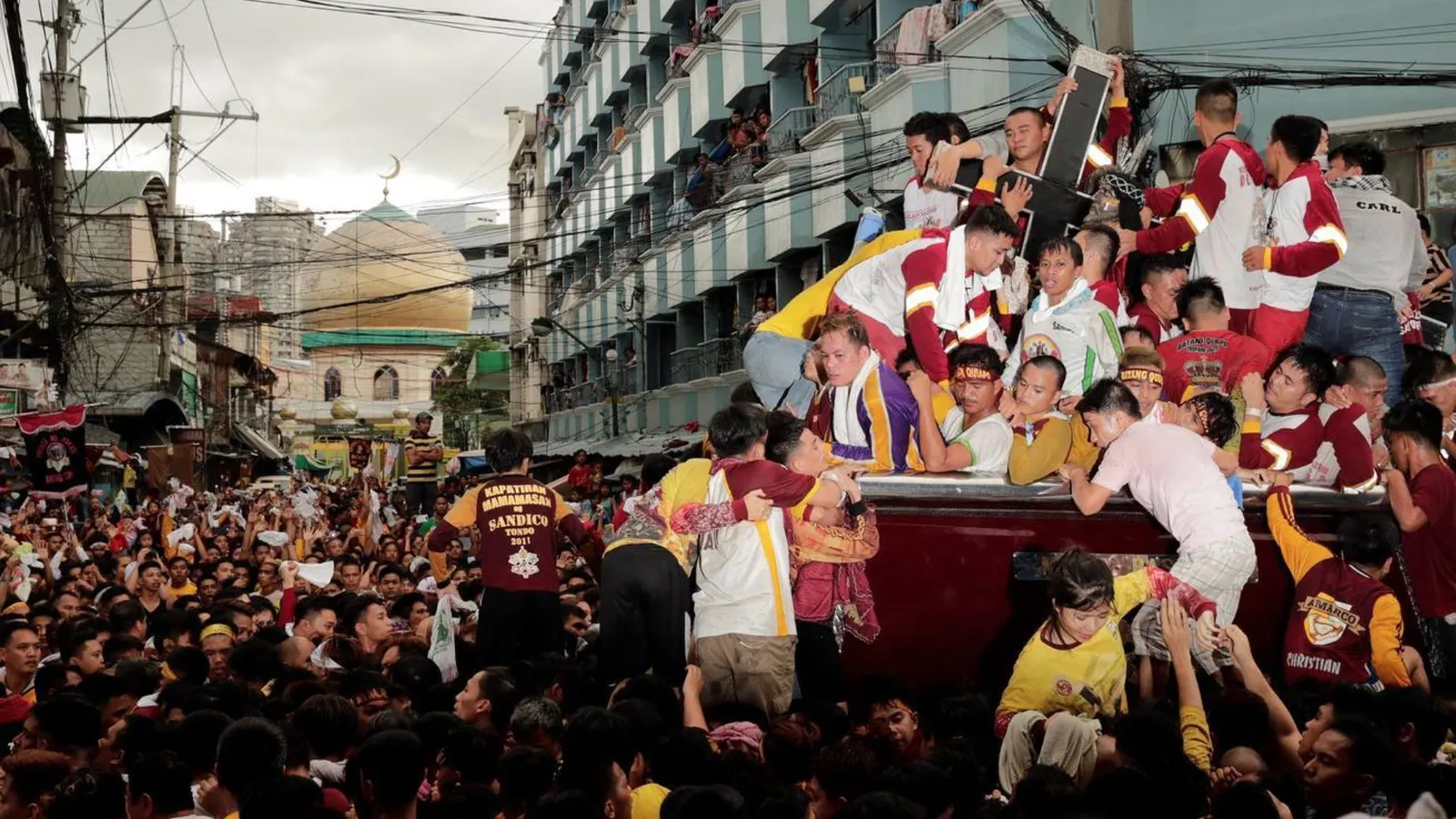Una procesión caótica y claustrofóbica que puede durar entre 18 y 22 horas y donde muchos de los fieles acuden descalzos y tratan de tocar la figura o frotar una toalla sobre esta debido a la creencia de que concede buena suerte o puede curar enfermedades.
