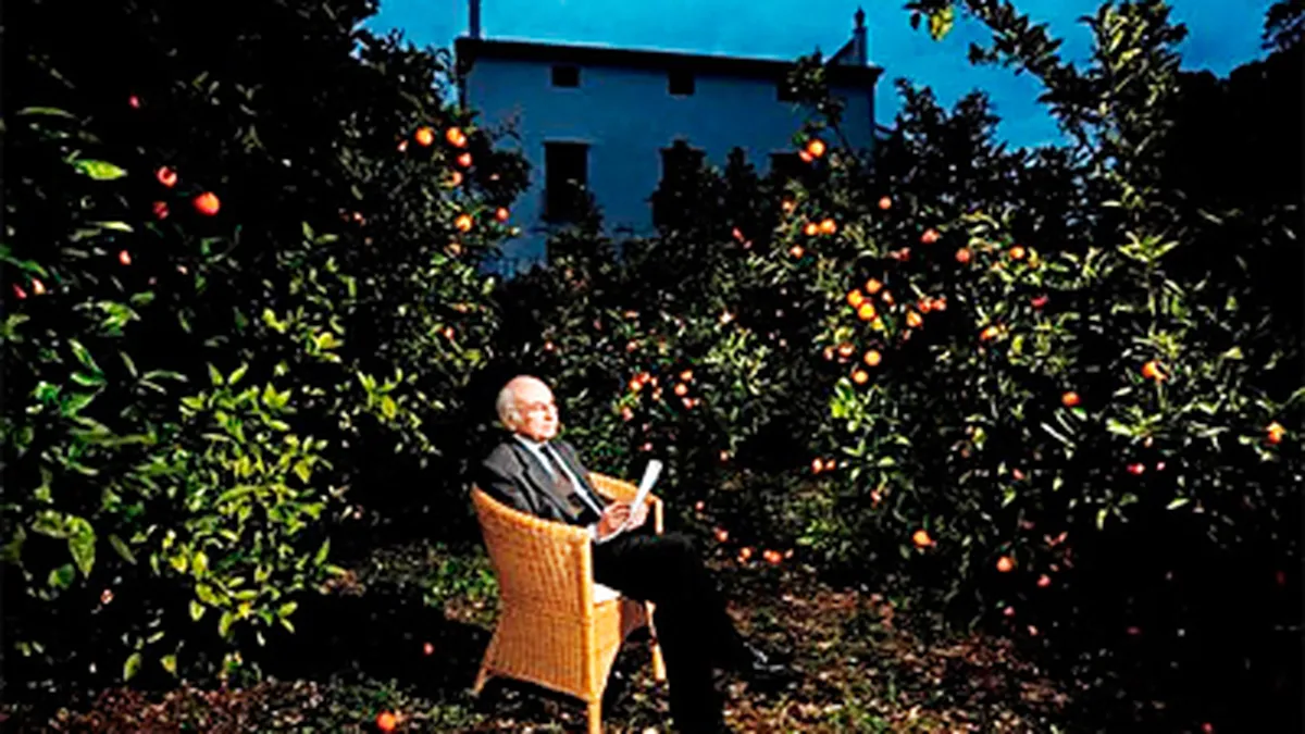 Acaba de obtener el Premio Cervantes el escritor valenciano Francisco Brines. Mi más cordial felicitación a tan importante poeta de la generación de los 50. En portada, una hermosa fotografía del poeta de Oliva en su jardín de Elca, entre naranjas y un anochecer de paz y ensueño. Con enorme placer he bajado al atril de lectura su "POESÍA COMPLETA" (Tusquets 2000), y repasado con emocionado aliento la fecunda galería de sus inquietantes versos. En un rincón del despacho encontré un librito, "Las brasas", su primer trabajo lírico, premio Adonais a sus 27 años.