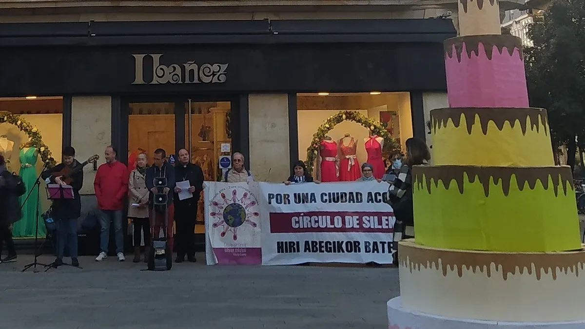Diez años han pasado desde aquel 3 de mayo de 2012 cunado en la Plaza de la Virgen Blanca de Vitoria-Gasteiz se reunía el primer Círculo de Silencio. Meses más tarde se trasladaría el círculo unos metros, hasta la plaza de General Loma, actual emplazamiento de la cita mensual que cada primer jueves de mes y, salvo durante el confinamiento, ha mantenido con fidelidad la denuncia silenciosa de aquellas situaciones injustas que se dan en la capital de Euskadi.