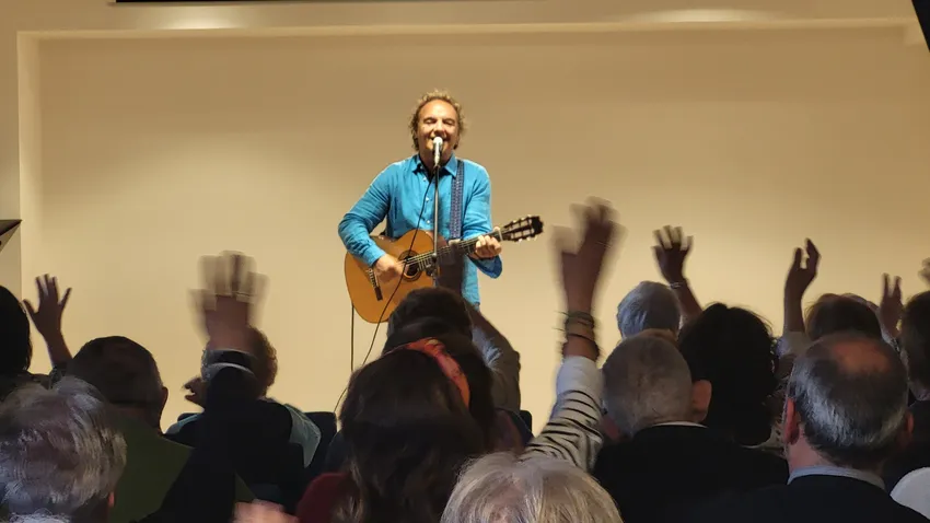 El cantautor Migueli pasó por Murguía (Álava) “regalando su sombra” cual Don Bosco. Y lo hizo concretamente con los residentes, familiares y trabajadores de la residencia Purísima Concepción que regentan las Hijas de la Caridad de San Vicente de Paúl.