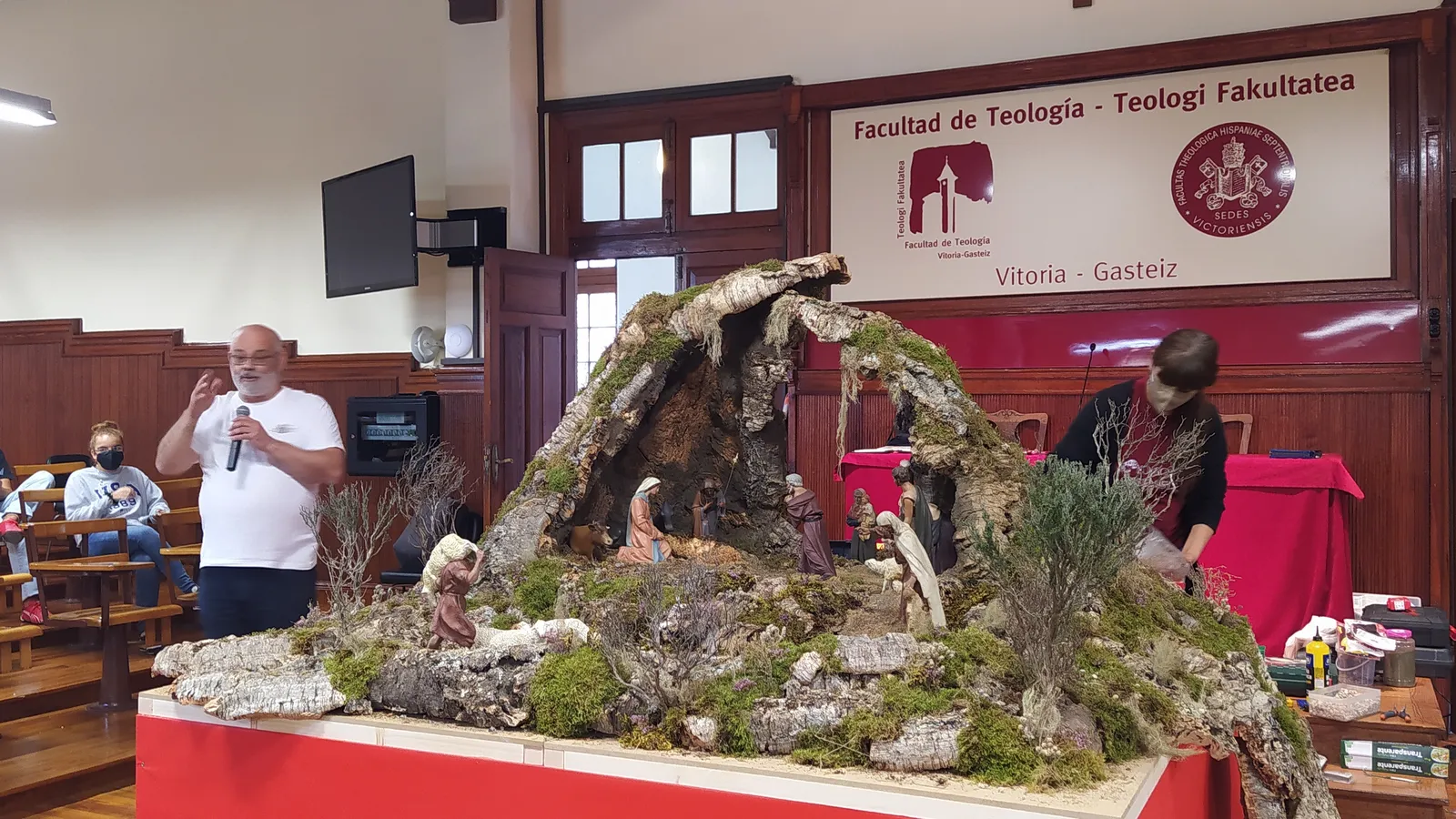 Tarragona o Majadahonda. Entre todos han elaborado un gran nacimiento de corcho y musgo, dirigidos por la mano maestra de los belenistas de Fuente Álamo (Murcia), que será expuesto en la tradicional muestra de Navidad que anualmente puede verse en la iglesia de Nuestra Señora del Carmen y que, previsiblemente, volverá este año a retomarse tras el parón por la situación sanitaria. De momento, la enorme gruta de corcho ha quedado expuesta en uno de los pasillos del Seminario Diocesano.