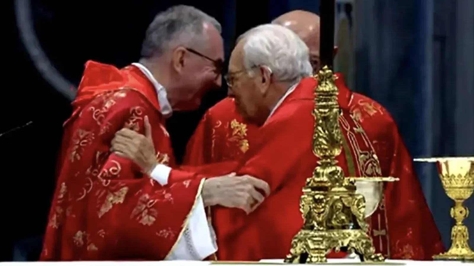 Primero, el gesto: en el abrazo de la paz, Re se acercó a Parolin y le susurró al oído un “auguri doppi” (“ánimos dobles”), una expresión que en el contexto vaticano se prestó a todo tipo de interpretaciones. No fue un simple saludo fraterno, sino un guiño público y descarado al candidato favorito de la Curia en du doble papel de director del cónclave y de papable máximo. Un espaldarazo en toda regla ante la mirada atenta de los electores y de los medios.