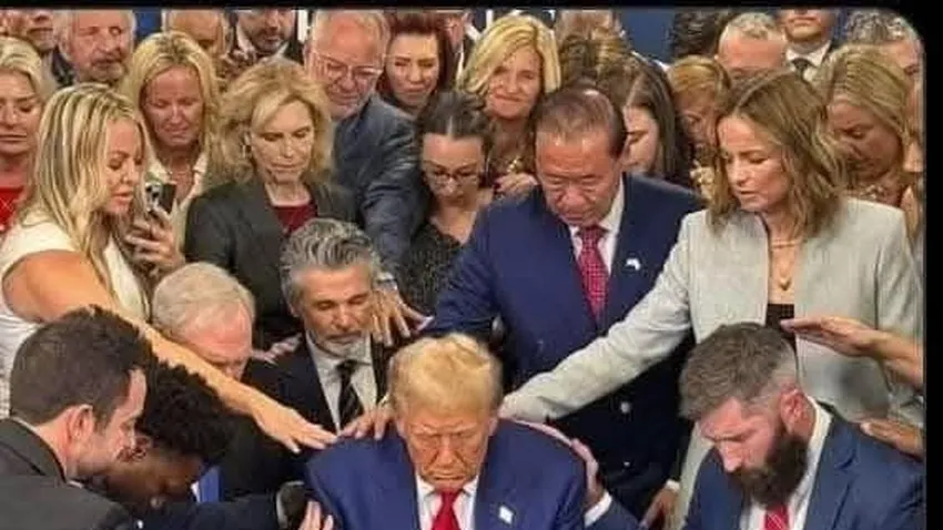 Por todo esto te pedimos, ¡oh Dios de los Ejércitos, Todopoderoso, vengador sin piedad del mal realizado a tus fieles a lo largo y ancho de nuestra tierra prometida!, bendice a tu Enviado y Mesías Donald Trump, muéstrale tu voluntad y dale fuerza para seguir tus deseos, que como mejor cumplidor hijo tuyo, los siente como sus propios deseos.