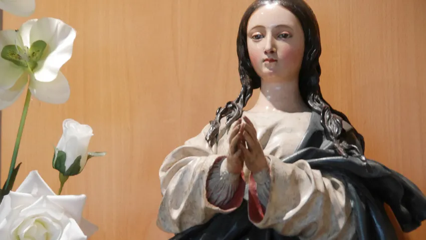 Era un instante eterno, con el cordón azul de su medalla al cuello, contemplar a la Virgen adolescente de la congregación mariana en aquellas velas de oración ante su imagen niña.